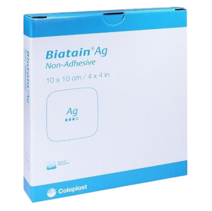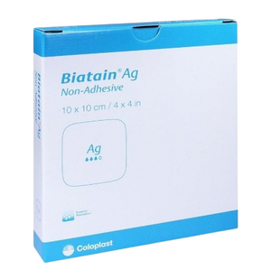 Product description Usage Biatain Ag Non-Adhesive can be used for a wide range of exuding wounds with delayed healing due to bacteria, or where there is a risk of infection, including leg ulcers, pressure ulcers, second-degree burns, donor sites, diabetic foot ulcers, postoperative wounds and skin abrasions. Biatain Ag can be used in combination with compression therapy. Biatain Ag is a soft and conformable silver foam dressing. Unique 3D foam structure for superior absorption...