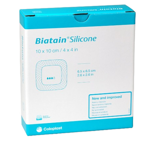 Description; Superior absorption due to unique 3D foam When in contact with exudate, the unique 3D foam structure of Biatain® Silicone conforms closely to the wound bed for superior absorption - even under compression. The unique 3D foam structure absorbs the exudate vertically and together with the lock-away layer it locks away the fluid within its structure, still leaving the wound moist for optimal moist wound healing conditions. The fluid handling properties of Biatain® Silicone ensure optimal control of exudate thus minimizing risk of leakage and maceration. Gentle and secure fit The silicone adhesive layer provides a secure fit to keep the dressing in place while ensuring minimal pain upon removal (1,2). The soft and flexible design of Biatain® Silicone ensures a close fit to wound and body, and the foam pad at skin level makes Biatain® Silicone comfortable to wear – even under compression (2)....