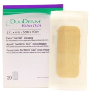 Description: Thin flexible and versatile. Designed to reduce the risk of further skin breakdown due to friction. DuoDERM® Extra Thin Dressing can be used as a primary hydrocolloid dressing for dry to lightly exuding wounds. It can be used as a secondary dressing to secure an AQUACEL® Dressing or an AQUACEL® Ag Dressing....