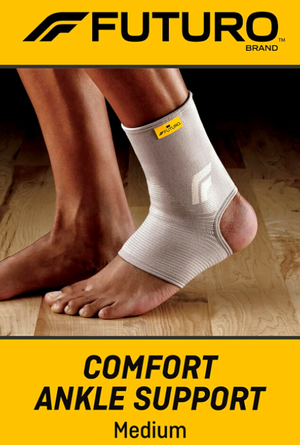 FUTURO™ Comfort Ankle Support Size Medium: Four-way stretch materials and design conforms to your elbow for comfort and mild support Helps support stiff, sore, or injured ankles Breathable materials allow...
