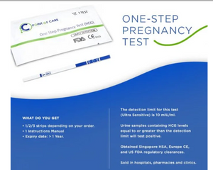 The test strip detects the human chorionic gonadotropin (hCG) in your urine, for an early diagnosis of pregnancy. The package is inclusive of:A pouch with 1 test strip and desiccantInstructions