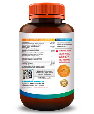Holistic Way Skin White — Skin Lightening Formula (60VegeCaps):Holistic Way Skin White is a special combination of L-Glutathione, Tomato/Lycopene, Beta-Carotene, Alpha-Lipoic Acid and Turmeric that may help protect skin from...