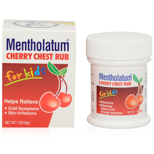 Mentholatum Cherry Chest Rub for Kids 28gAids in the relief of stuffy noses? chest congestion? sinus congestion? head colds? chest colds? and muscular aches due to coughs and colds.Soothes chapped...