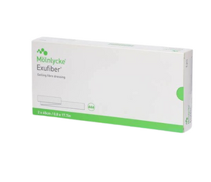 Description: Exufiber® Ag+ wtih Hydrolock® technology is a sterile non-woven gelling fiber design with a rapid antimicrobial action for sustained protection against a broad range of Gram negative and Gram positive bacteria. 1 Exufiber Ag+ is proven to kill 99 percent of fungus within 24 hours (in vitro) and may reduce odor. 1 When Exufiber Ag+ comes into contact with wound exudate, it transforms into a gel. The gel helps support a moist wound healing environment and stays in one-piece so it can be easily removed upon dressing change. 2 The high absorption and retention capacity may reduce the risk of leakage and maceration. 3 4 Exugiber Ag+ can be used in the management of medium to highly-exuding wounds Exufiber Ag+ can be used in combination with Mepilex® Border with Safetac®...