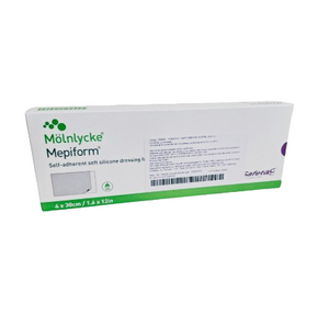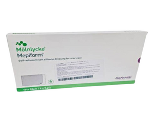 Description: Topical silicone empirically has been shown to have a positive impact on hypertrophic and keloid scars. 1 Mepiform® should optimally be worn 24 hours a day. It is recommended that Mepiform is removed once a day (e.g., when showering or bathing) for inspection and washing of the skin. For prophylactic treatment, Mepiform should be used for 2–6 months depending on the condition of the scar. Benefits of Mepiform Conforms well to body contours No extra fixation is needed...