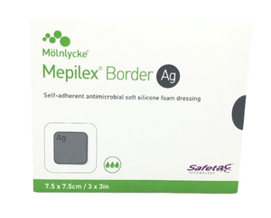 Mepilex® Border Ag silver foam dressing delivers a rapid (within 3 hours) and sustained (up to 7 days) antimicrobial action* 1 2 3 . Mepilex Border Ag is designed for the management of medium to high exuding leg and foot ulcers, pressure ulcers, malignant wounds, partial thickness burns, traumatic and surgical wounds where a moist environment, exudate handling, gentle ixation and an antimicrobial action is indicated.