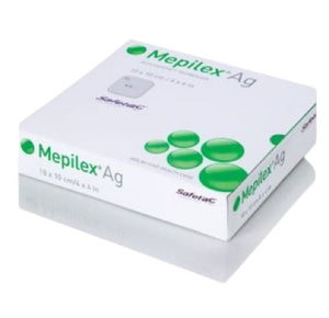 Description: Mepilex® Ag is a soft and highly conformable antimicrobial foam dressing that absorbs exudate and maintains a moist wound environment. The Safetac® technology layer seals the wound edges, preventing the exudate from leaking onto the surrounding skin, thus minimizing the risk of maceration. 1 The Safetac technology layer allows that the dressing can be changed without damaging the wound or surrounding skin or exposing the patient to additional pain. Mepilex Ag starts to inactivate wound related pathogens within 30 minutes with sustained effect up to 7 days. 1 By reducing the number of microorganisms, Mepilex Ag may also reduce odor. Minimizes pain and trauma at dressing changes 2 ...