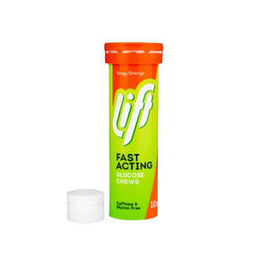 PRODUCT INFORMATION Lift Glucose Chews contain a 3.7g of glucose (dextrose), your body's preferred source of sugar, to give you that fast-acting boost when your body needs it most. Lift can help you get the most out of sports training, unlock that extra 5% in a big race or match, or keep you going through long days and late nights. For those managing diabetes, Lift Glucose Chews can be used to help prevent and treat hypos, with results in 15 minutes. Each tube of Lift contains 10 fast-acting natural glucose tablets. Each Tub of Lift contains 50 fast-acting natural glucose tablets. These are caffeine, taurine, gluten & fat free. Lift Chews are free from any artificial colours, preservatives, or sweeteners and are suitable for both vegans and vegetarians. HOW TO USE & STORE For sports enthusiasts, take 2 tablets 10-15 minutes prior to any high energy activity that will last 30 mins or longer. Continue as required every 30 minutes. For diabetics, Lift can be used to help manage blood sugar levels. Take 3 or more Lift tablets to initially increase blood sugar levels....
