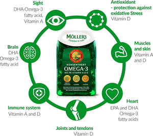 Mollers Concentrated Omega-3 Supplements 112 Capsules: Helps keep you healthy Möller’s Concentrated is a unique combination of natural omega 3 from fish and vitamins D, A and E. Omega...