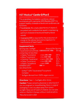 HST Cardio-Q Plus E 90 soft-gels: HST Medical® Cardio-Q Plus E combines natural tocotrienols with coenzyme Q10 (KANEKA Q10™) to support healthy cholesterol levels and cardiovascular functions. Tocotrienols – Unsaturated...