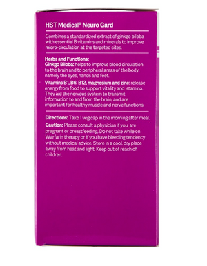 HST Neuro Gard 60's: HST Medical™ Neuro Gard combines a standardized extract of ginkgo biloba with essential B vitamins and minerals to improve micro-circulation at the target sites, support mental...