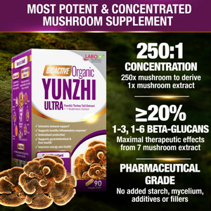 LABO Nutrition Bioactive Yunzhi Ultra: A potent blend of 7 medicinal mushrooms into 1, Bioactive Organic Yunzhi Ultra (Turkey Tail) combines multiple biologically active compounds for maximal therapeutic effects. A comprehensive immune...