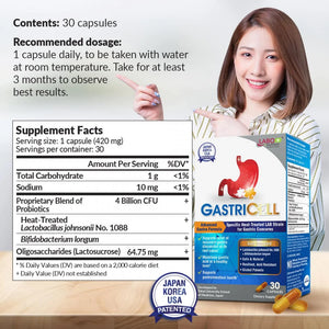LABO Nutrition Gastricell Capsules 30s: GASTRICELL is an advanced and potent gastro formula that effectively eliminates the root cause of gastric acid-related symptoms to promote natural healing with long-term soothing...