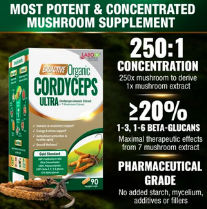 LABO Nutrition Bioactive Cordyceps Ultra: Bioactive Organic Cordyceps Ultra provides a full spectrum of bioactive compounds extracted from the most potent parts (mycelium, fruit body, primordia, spores and extracellular compounds)...